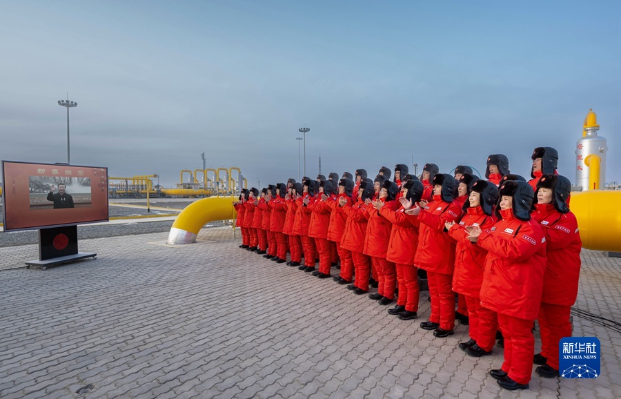 1月18日,中共中央總書(shū)記、國(guó)家主席、中央軍委主席習(xí)近平在北京通過(guò)視頻連線看望慰問(wèn)基層干部群眾,向全國(guó)各族人民致以新春的美好祝福。這是習(xí)近平通過(guò)視頻連線,同塔里木油田公司輪南油氣儲(chǔ)運(yùn)中心西氣東輸?shù)谝徽究死瘹鈪^(qū)員工親切交流。新華社記者 翟健嵐 攝