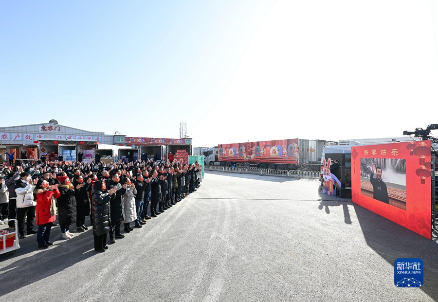 新發(fā)地農(nóng)產(chǎn)品批發(fā)市場(chǎng)是北京市重要的“菜籃子”、“果盤(pán)子”。習(xí)近平通過(guò)視頻親切看望慰問(wèn)批發(fā)市場(chǎng)留守的商戶和采購(gòu)年貨的群眾。在蔬菜一區(qū)露天交易區(qū),商戶和現(xiàn)場(chǎng)的群眾熱烈鼓掌,向總書(shū)記問(wèn)好。聽(tīng)完市場(chǎng)負(fù)責(zé)人介紹保供和物流情況后,習(xí)近平仔細(xì)詢問(wèn)這幾天市場(chǎng)運(yùn)行情況怎么樣、今年商戶的買賣怎么樣、今年批發(fā)價(jià)格怎么樣。得知菜價(jià)保持平穩(wěn)、種類充足齊全,習(xí)近平十分欣慰。他指出,民以食為天?!安嘶@子”、“米袋子”、“果盤(pán)子”,事關(guān)千家萬(wàn)戶,是最基本的民生。過(guò)年過(guò)節(jié),安全不能忘。批發(fā)市場(chǎng)既要在拓展貨源、豐富品種、保證質(zhì)量上下功夫,也要在加強(qiáng)食品檢測(cè)和市場(chǎng)管理上下功夫,讓首都市民吃得放心、吃得舒心。農(nóng)貿(mào)市場(chǎng)人流物流密集,是疫情防控的重點(diǎn)場(chǎng)所,要適度調(diào)控人流物流,加強(qiáng)疫情監(jiān)測(cè)檢測(cè),搞好市場(chǎng)環(huán)境衛(wèi)生,盡最大努力降低疫情風(fēng)險(xiǎn)。習(xí)近平強(qiáng)調(diào),各級(jí)黨委和政府要落實(shí)好“米袋子”省長(zhǎng)負(fù)責(zé)制、“菜籃子”市長(zhǎng)負(fù)責(zé)制,加強(qiáng)糧油肉蛋奶果蔬菌等重要民生商品的產(chǎn)銷保供,暢通物流配送,豐富節(jié)日市場(chǎng)供應(yīng),確保數(shù)量充足、品種豐富、質(zhì)量放心、價(jià)格穩(wěn)定,讓人民群眾開(kāi)開(kāi)心心、安安心心過(guò)大年。