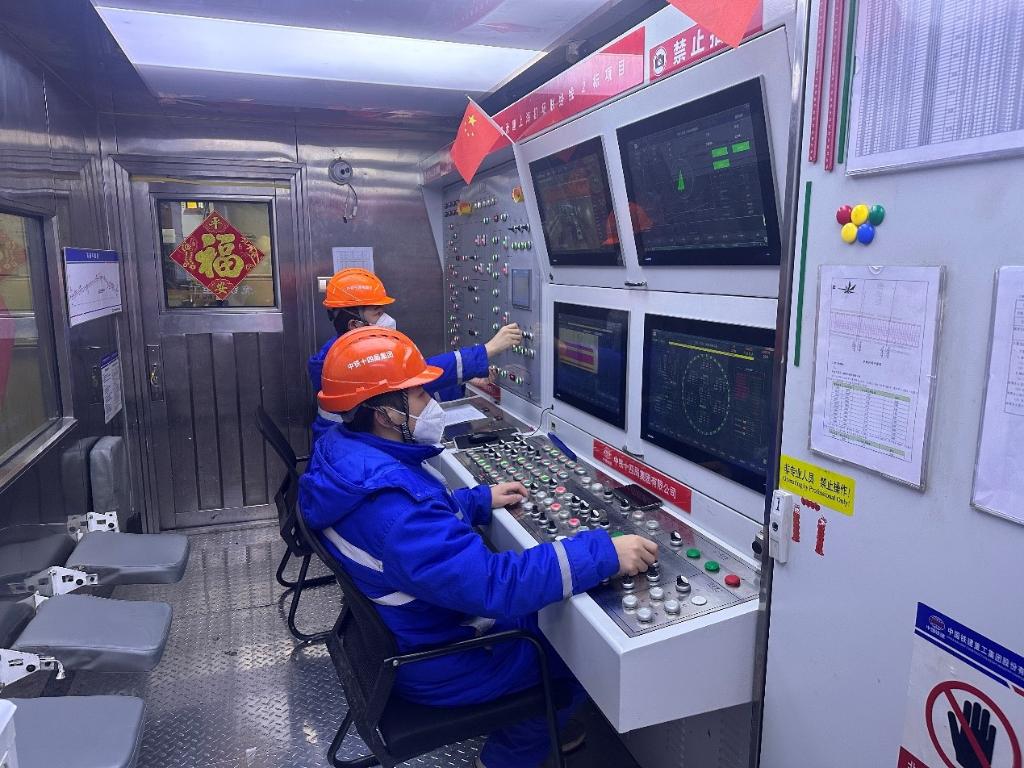 在中鐵十四局上海機場聯(lián)絡(luò)線2標段施工現(xiàn)場,盾構(gòu)機長正操作盾構(gòu)機不斷掘進。(受訪者供圖)