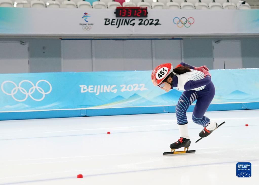 2023年2月4日,張騫予在國家速滑館參加“冰絲帶”市民速度滑冰比賽。新華社記者 張晨霖 攝