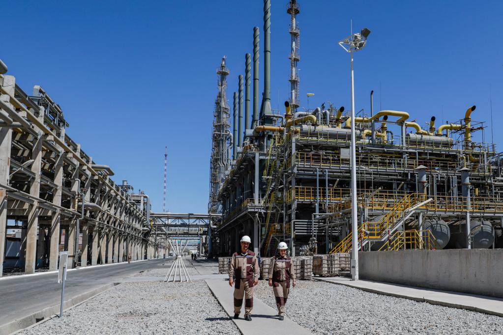 這是去年8月18日在烏茲別克斯坦納沃伊市拍攝的納沃伊氮肥股份公司聚氯乙烯工廠。