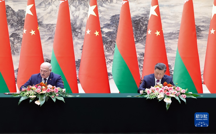 會(huì)談后,兩國(guó)元首共同簽署《中華人民共和國(guó)和白俄羅斯共和國(guó)關(guān)于新時(shí)代進(jìn)一步發(fā)展兩國(guó)全天候全面戰(zhàn)略伙伴關(guān)系的聯(lián)合聲明》,并見(jiàn)證簽署經(jīng)貿(mào)、工業(yè)、農(nóng)業(yè)、海關(guān)、科技、衛(wèi)生、旅游、體育、地方等領(lǐng)域多項(xiàng)雙邊合作文件。