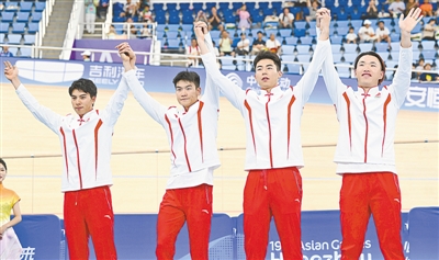 ??昨天,亞運(yùn)會(huì)場地自行車比賽在淳安界首體育中心自行車館繼續(xù)進(jìn)行,河南選手楊陽和隊(duì)友一起出戰(zhàn)男子自行車4公里團(tuán)體追逐賽,以3分56秒277的成績獲得亞軍,金牌被日本選手奪得。