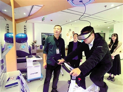 職工在市職工文體中心幸福體驗(yàn)館體驗(yàn)“移步換景”設(shè)備