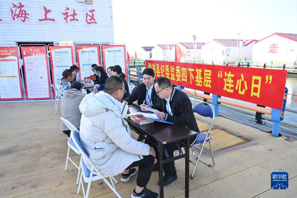 2023年11月18日,寧德市霞浦縣紀委監(jiān)委工作人員在溪南鎮(zhèn)七星海上社區(qū)接訪。新華社記者 姜克紅 攝