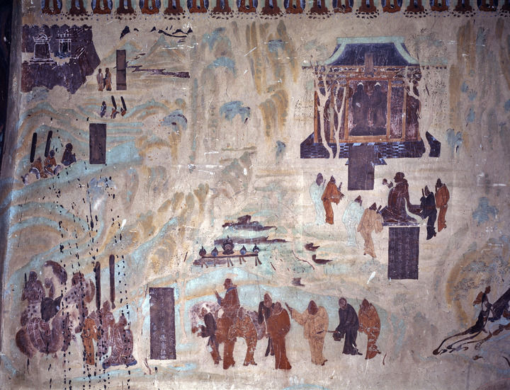 ??今天,兩晉南北朝至隋唐的畫(huà)作絕大多數(shù)已經(jīng)失傳。這種色彩明快的唐代青綠山水畫(huà),是莫高窟為后世留存的一段珍貴文化記憶。