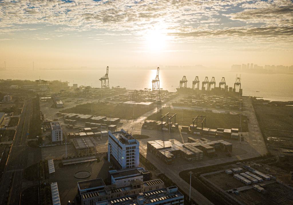 ??2024年1月1日在海南省洋浦經(jīng)濟開發(fā)區(qū)拍攝的海南自貿(mào)港集裝箱航運樞紐——洋浦國際集裝箱碼頭(無人機照片)。新華社記者 蒲曉旭 攝