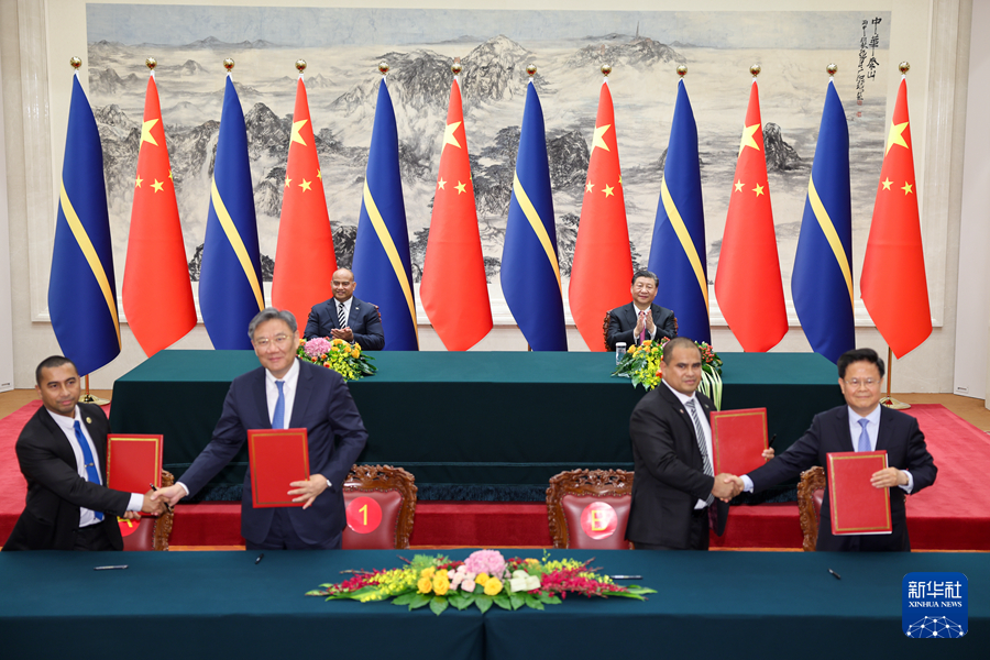 ??習(xí)近平指出,今年1月,瑙魯作出堅(jiān)持一個(gè)中國原則、同中國復(fù)交的政治決斷,這是符合歷史大勢、順應(yīng)時(shí)代潮流之舉。友好不分先后,只要開啟,就會(huì)有光明前途。合作不論大小,只要真誠,就會(huì)有豐碩成果。中瑙關(guān)系已經(jīng)翻開新的歷史篇章。中方愿同瑙方一道,開創(chuàng)中瑙關(guān)系的美好未來,更好造福兩國人民。