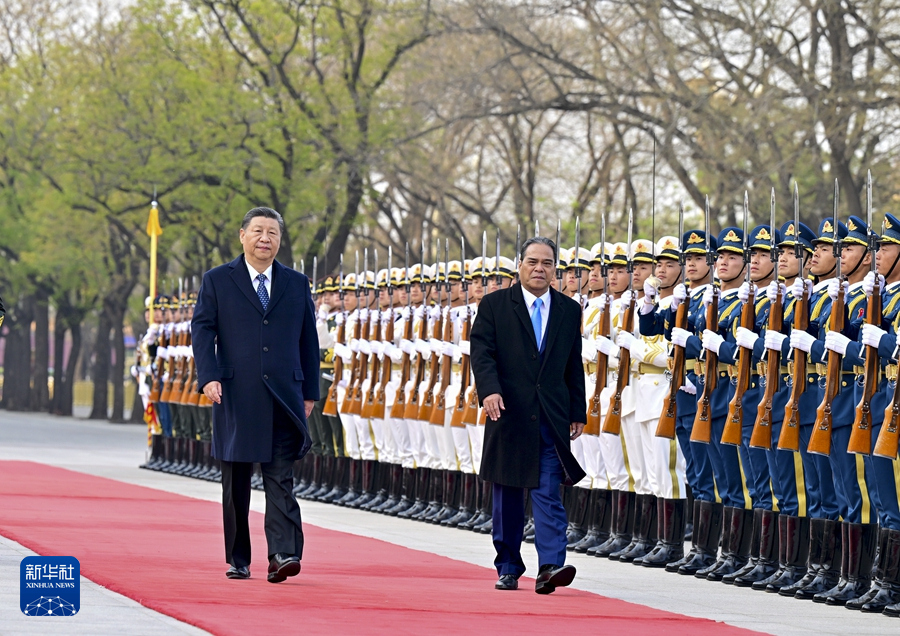 ??4月9日下午,國(guó)家主席習(xí)近平在北京人民大會(huì)堂同來(lái)華進(jìn)行國(guó)事訪問(wèn)的密克羅尼西亞聯(lián)邦總統(tǒng)西米納舉行會(huì)談。這是會(huì)談前,習(xí)近平在人民大會(huì)堂東門(mén)外廣場(chǎng)為西米納舉行歡迎儀式。新華社記者 殷博古 攝