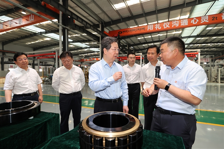 ??六月十一日,省委書記樓陽生到新安縣新強聯(lián)公司,調研科技創(chuàng)新、產(chǎn)業(yè)發(fā)展情況。記者 董亮 蔡迅翔 攝