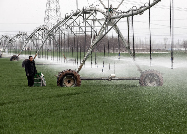 ??2024年3月18日,在河南省焦作市博愛縣孝敬鎮(zhèn)東原莊村瑞輝家庭農(nóng)場,村民使用全自動(dòng)指針式噴灌機(jī)進(jìn)行澆灌作業(yè)。新華社發(fā)(程全攝)