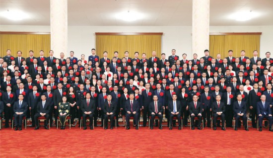 今天,我們隆重召開全國抗擊新冠肺炎疫情表彰大會,向作出杰出貢獻的功勛模范人物頒授共和國勛章和國家榮譽稱號獎?wù)?,表彰抗疫先進個人和先進集體,弘揚偉大抗疫精神,為決勝全面建成小康社會、奪取新時代中國特色社會主義偉大勝利而不懈奮斗!